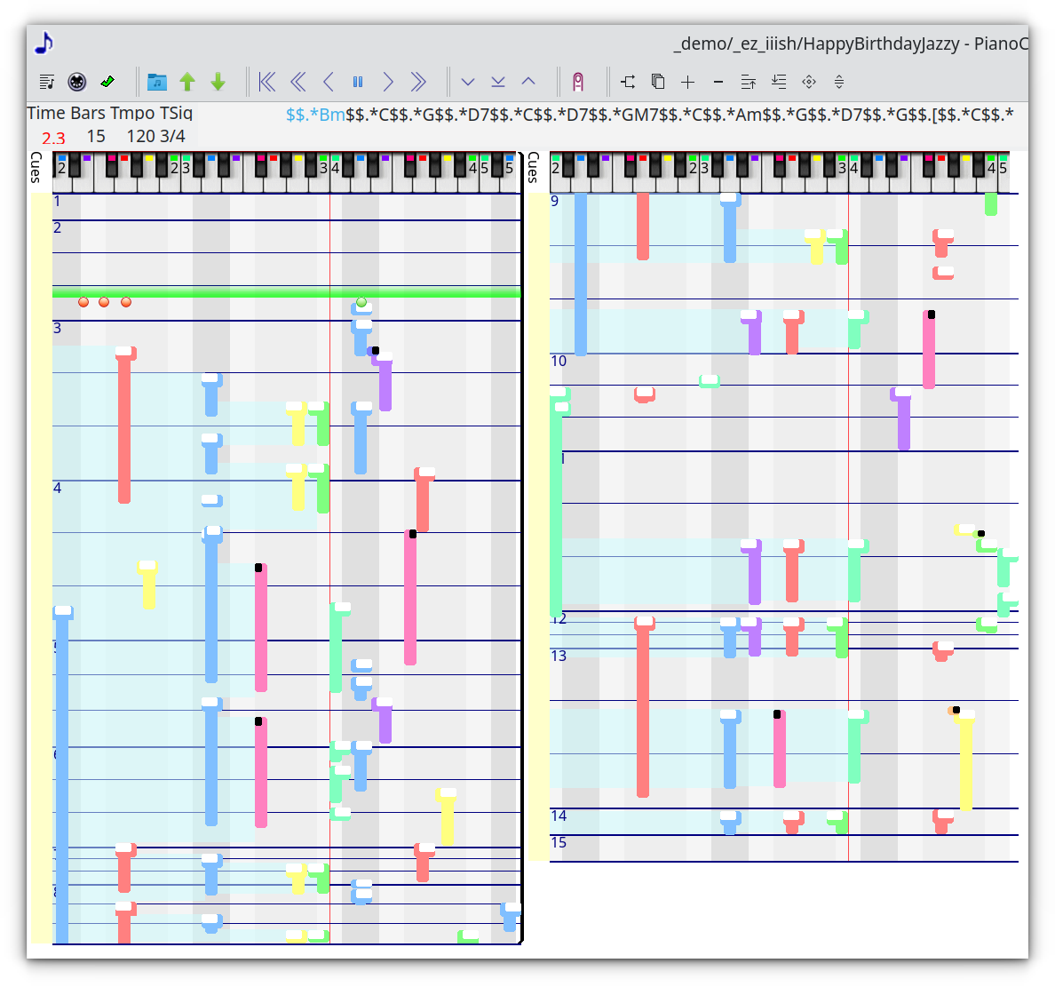 So for example, bar 14 is pretty short cuz the notes are all only on beat 1.